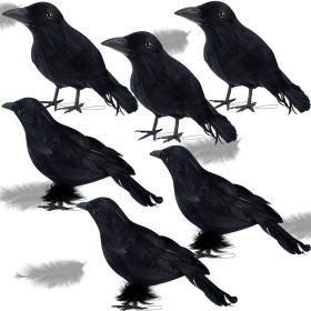 6 Pack Halloween Black Feathered Crows Realistic Party Home Decorations